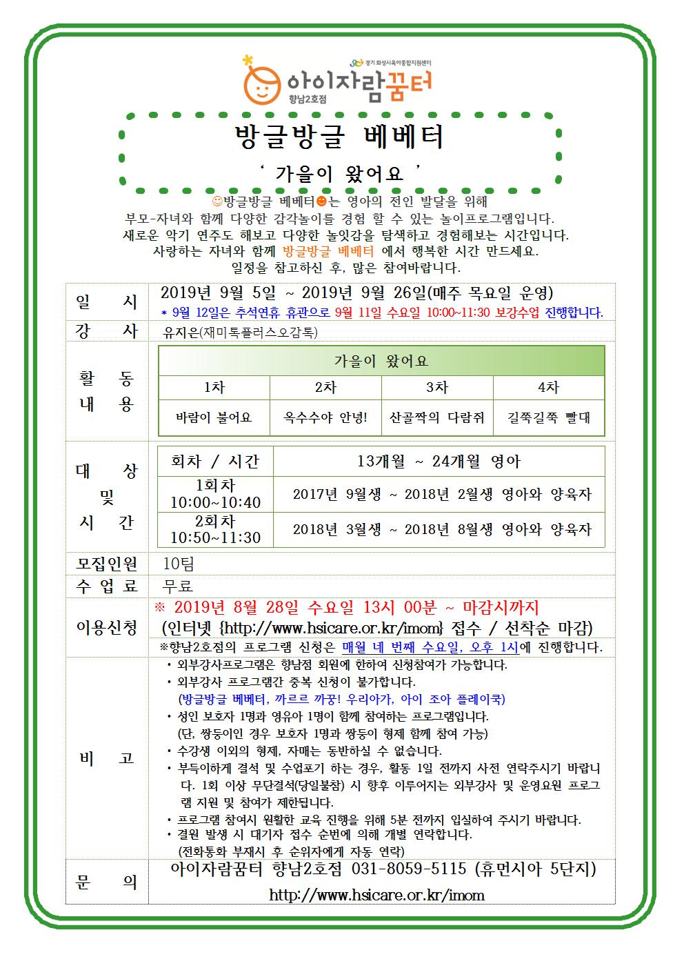 | 2019-09-05 (1ȸ) 10:00 ~ 10:40 (2ȸ) 10:50 ~ 11:30 | |