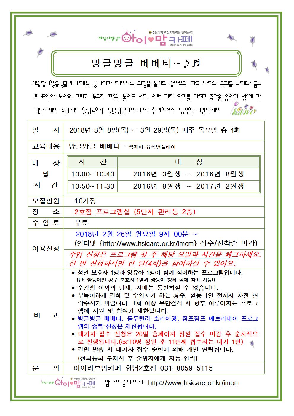 | 2018-03-08 (1ȸ) 10:00 ~ 10:40 (2ȸ) 10:50 ~ 11:30 | |