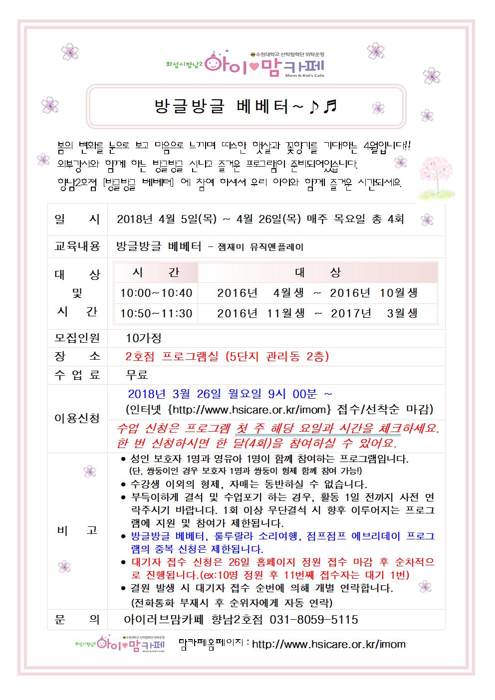 | 2018-04-05 (1ȸ) 10:00 ~ 10:40 (2ȸ) 10:50 ~ 11:30 | |