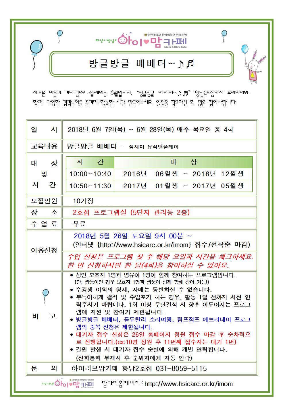 | 2018-06-07 (1ȸ) 10:00 ~ 10:40 (2ȸ) 10:50 ~ 11:30 | |