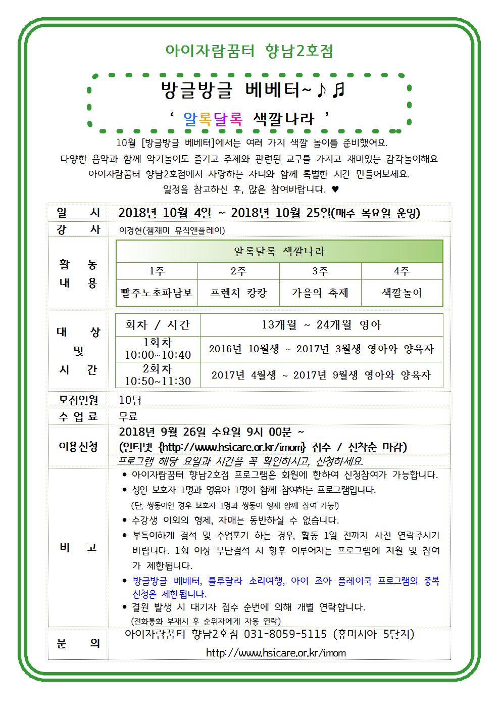 | 2018-10-04 (1ȸ) 10:00 ~ 10:40 (2ȸ) 10:50 ~ 11:30 | |