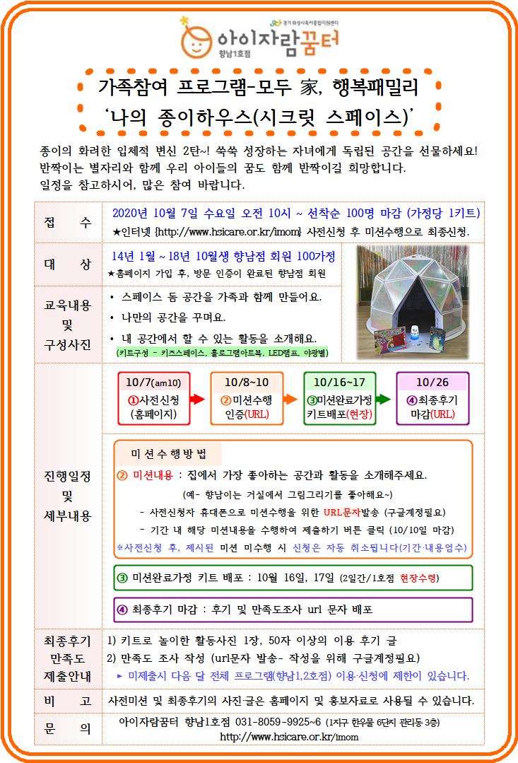 10¿ù °¡Á·Âü¿© - ³ªÀÇ Á¾ÀÌÇϿ콺2(½ÃÅ©¸´ ½ºÆäÀ̽º)