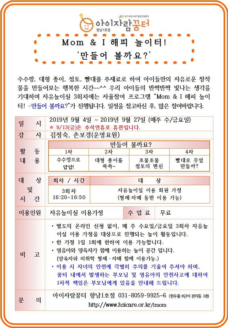 9¿ù ÇÁ·Î±×·¥ - Mom&I ÇØÇdzîÀÌÅÍ